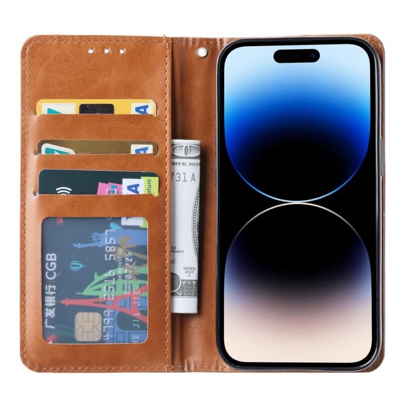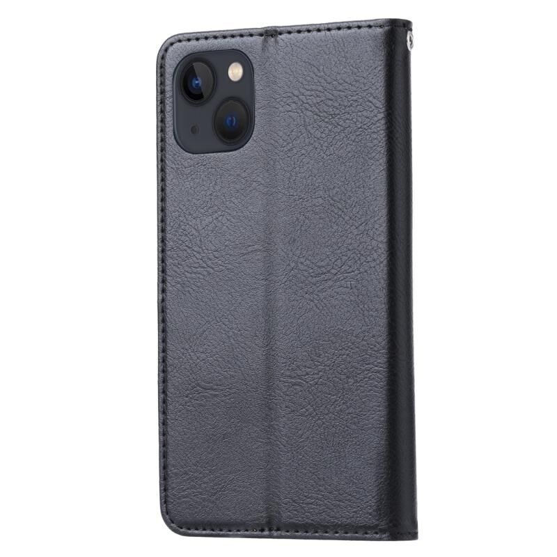 Θήκη τηλεφώνου από δέρμα με πτυσσόμενο καπάκι για iPhone 15 Plus, με υφή ζυμαριού (Μαύρο)