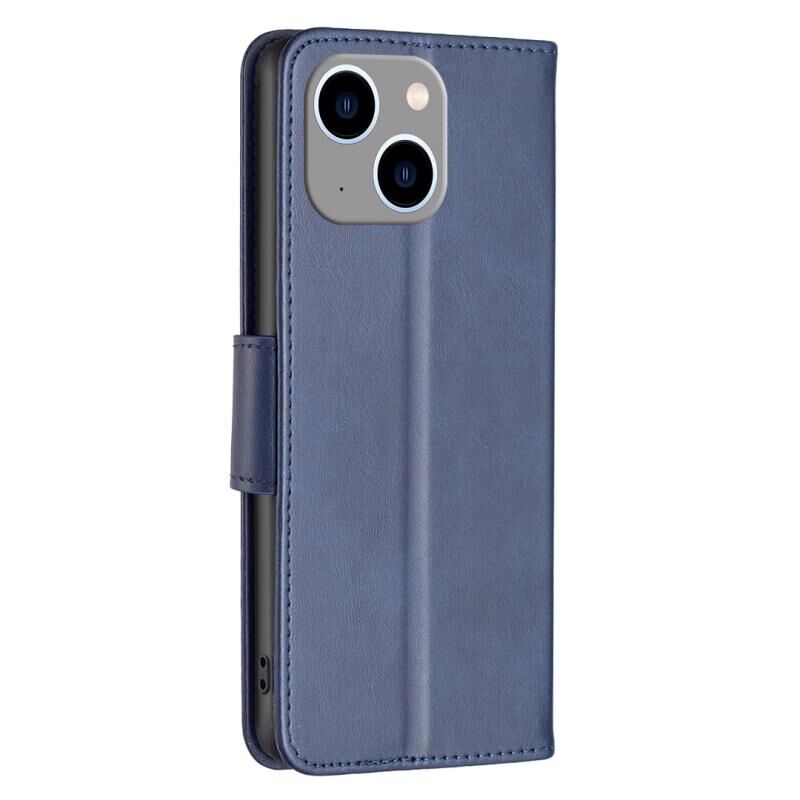 Θήκη τηλεφώνου από δέρμα αρνιού με καθαρό χρώμα και υφή, τύπου flip, για iPhone 15 Plus (Μπλε)