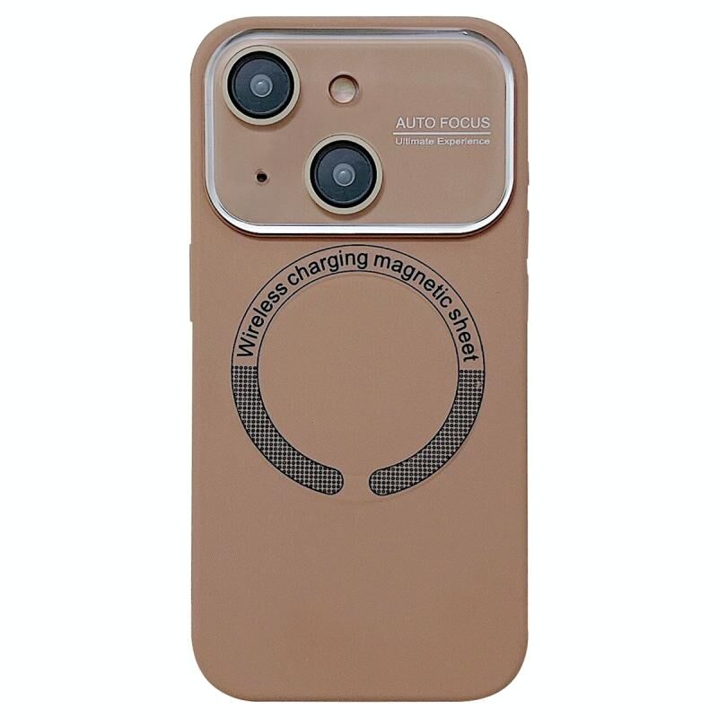 Θήκη τηλεφώνου σιλικόνης MagSafe με φακό από ακρυλικό γυαλί και μεγάλο παράθυρο για iPhone 15 Plus (Καφέ)