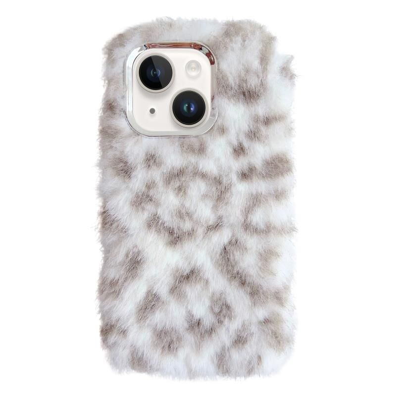 For iPhone 15 Plus Leopard Print Plush TPU Phone Case(Coffee)