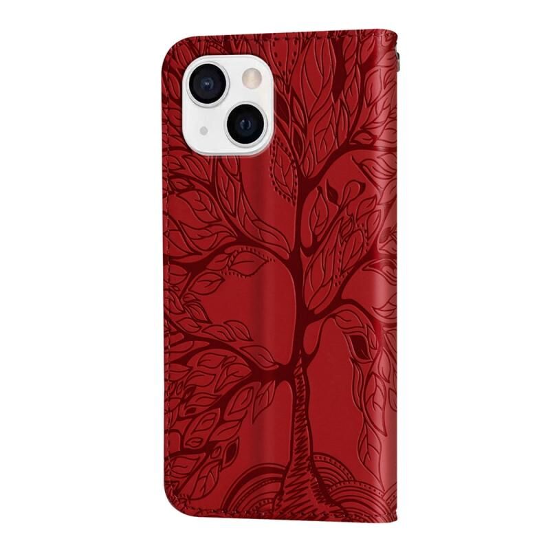 Θήκη τηλεφώνου δερμάτινη με ανάγλυφο σχέδιο Δέντρου της Ζωής για iPhone 15 Plus (Κόκκινο)