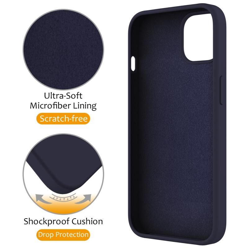Θήκη τηλεφώνου με μαγνητική σύνδεση MagSafe από υγρή σιλικόνη για iPhone 15 Plus με δακτύλιο στήριξης (Μπλε της νύχτας)