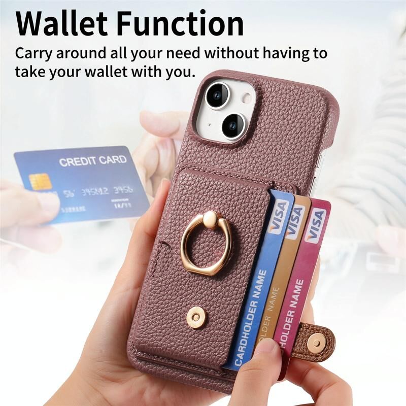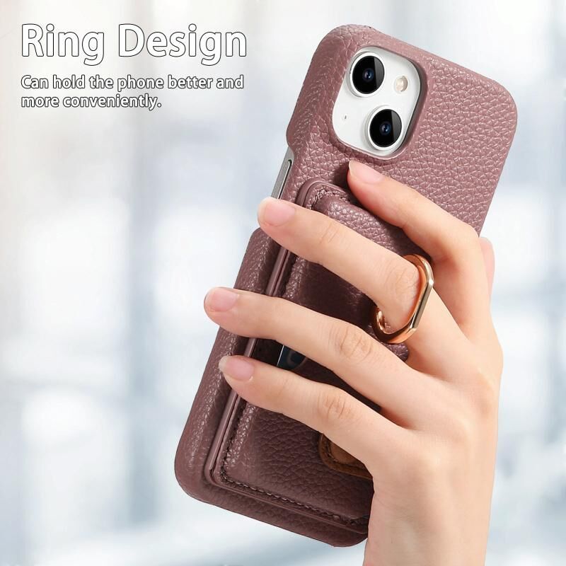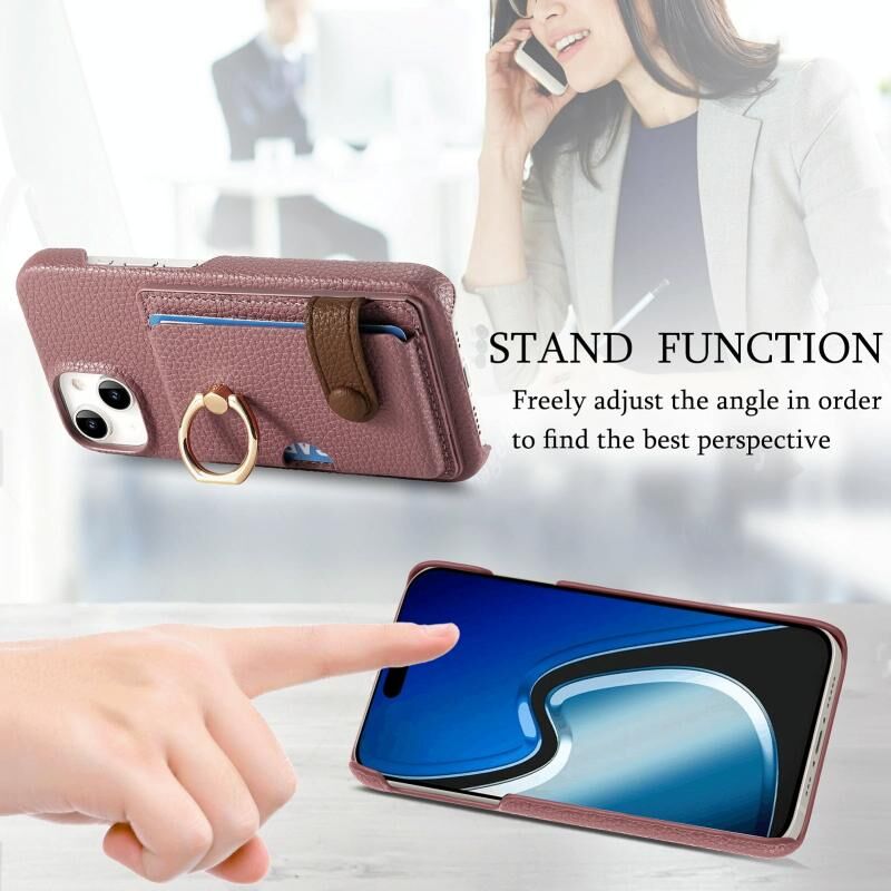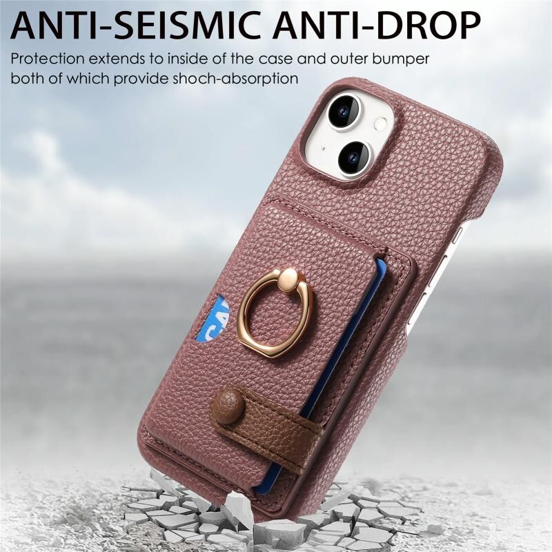 Θήκη τηλεφώνου για iPhone 15 Plus από δέρμα Litchi με λεπτή άκρη και θήκη καρτών στην πλάτη (βερίκοκο).