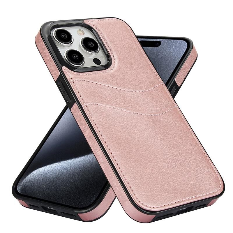 Θήκη τηλεφώνου για iPhone 15 Plus από δέρμα Litchi με θήκες για κάρτες (Μαύρο)
