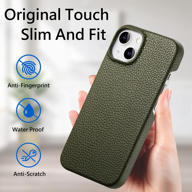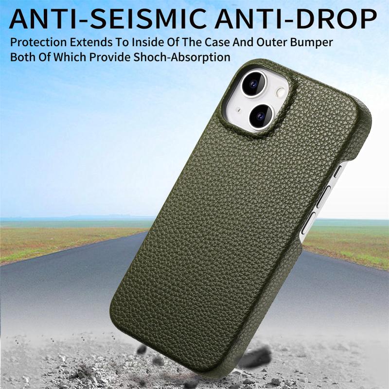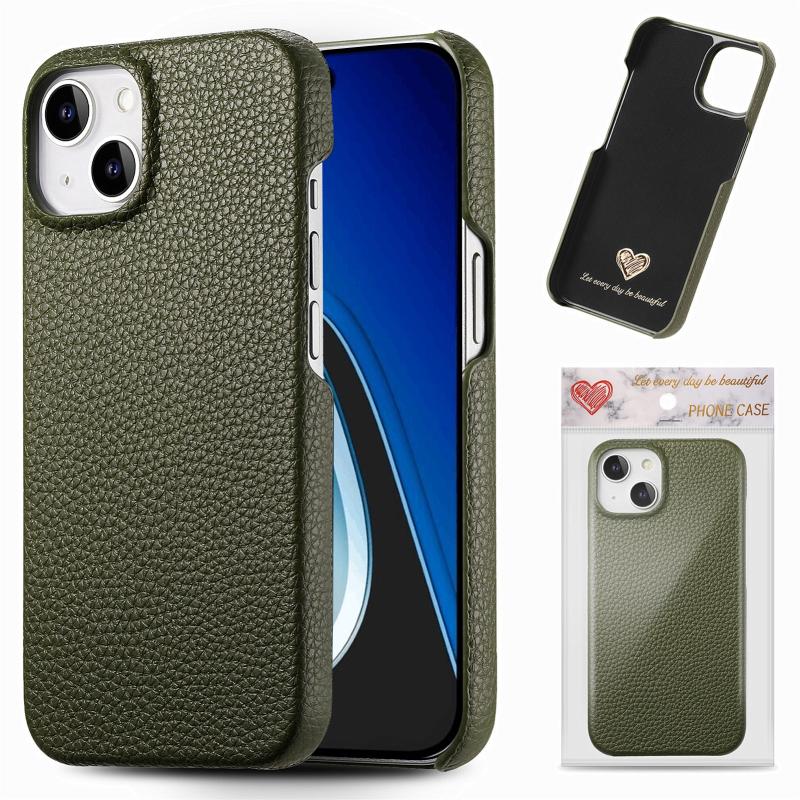 For iPhone 15 Plus Litchi Oil Edge Leather Back Phone Case(Green)