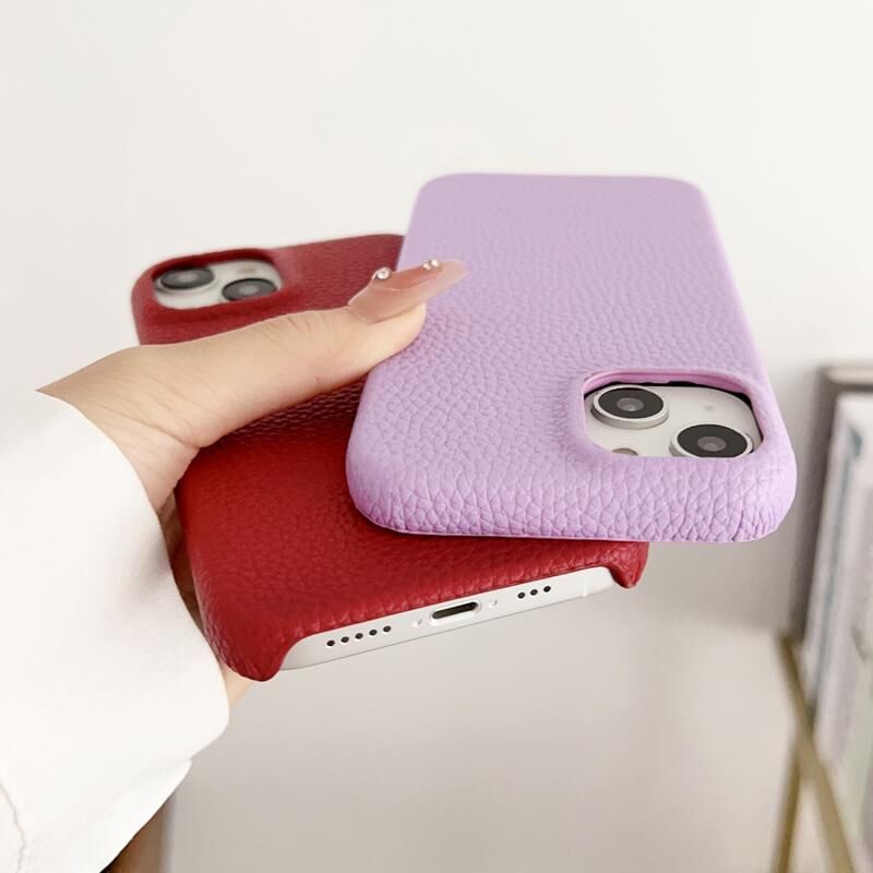 Θήκη κινητού τηλεφώνου για iPhone 15 Plus με υφή δέρματος λυτσί, πλήρως προστατευτική και αντικραδασμική (Γκρι)