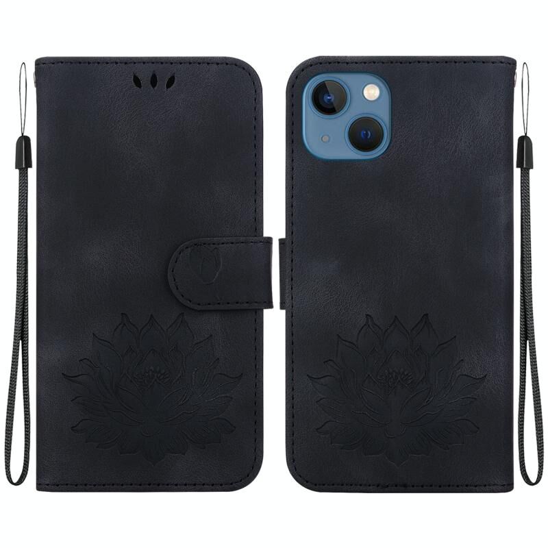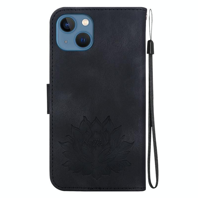 For iPhone 15 Plus Lotus Embossed Leather Phone Case(Black)