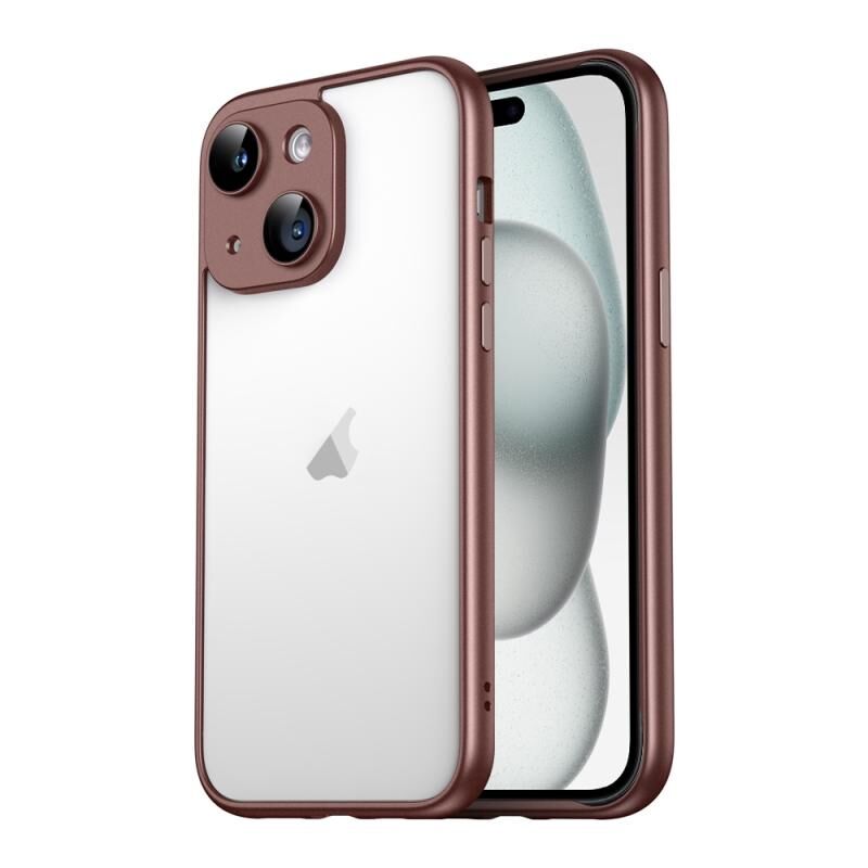 Θήκη για iPhone 15 Plus, Μακαρόν PC, Καθαρό Κέλυφος με Προστασία Φακού και Τζάμι (Καφέ)
