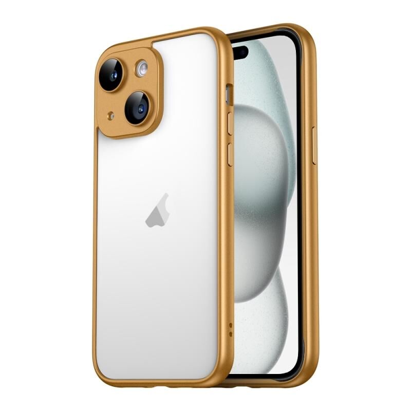 Θήκη για iPhone 15 Plus Μακαρόν PC με καθαρό πλαίσιο και προστατευτική μεμβράνη φακού (Μαύρο)