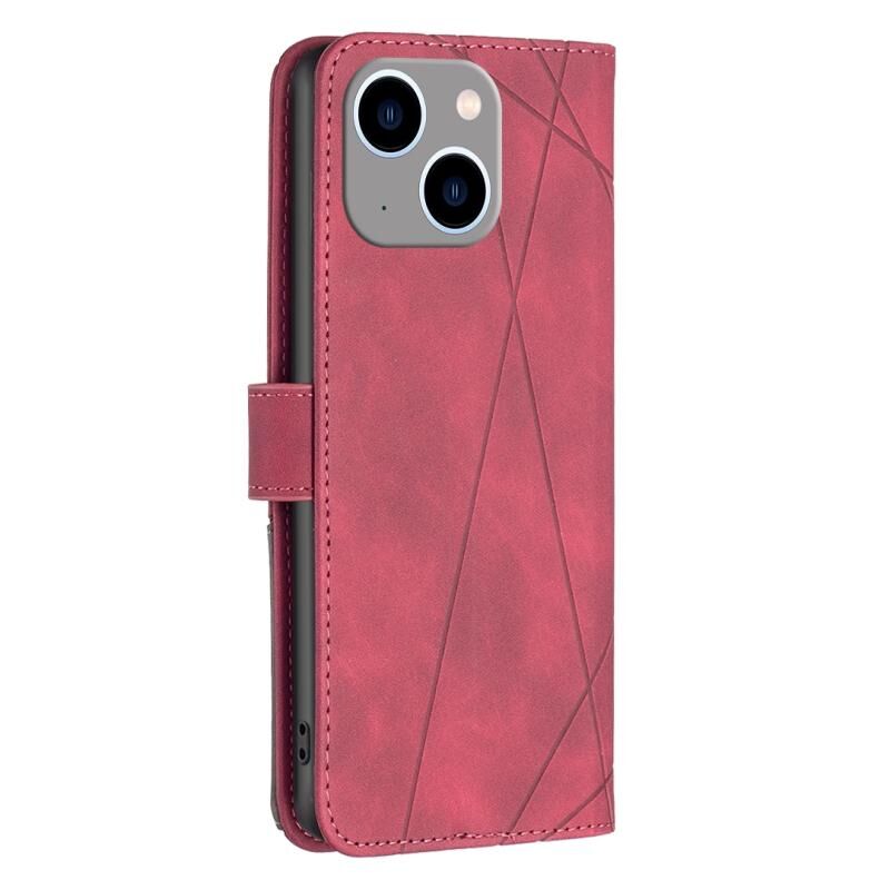 Θήκη τηλεφώνου δερμάτινη με μαγνητικό κούμπωμα και υφή ρόμβου για iPhone 15 Plus (Κόκκινο)