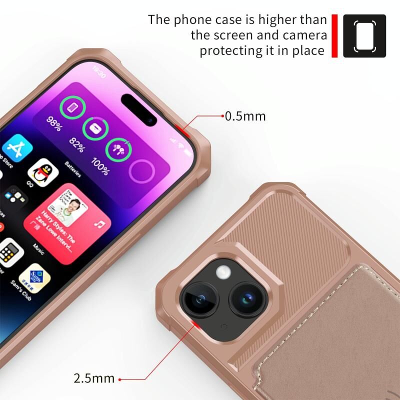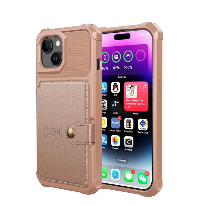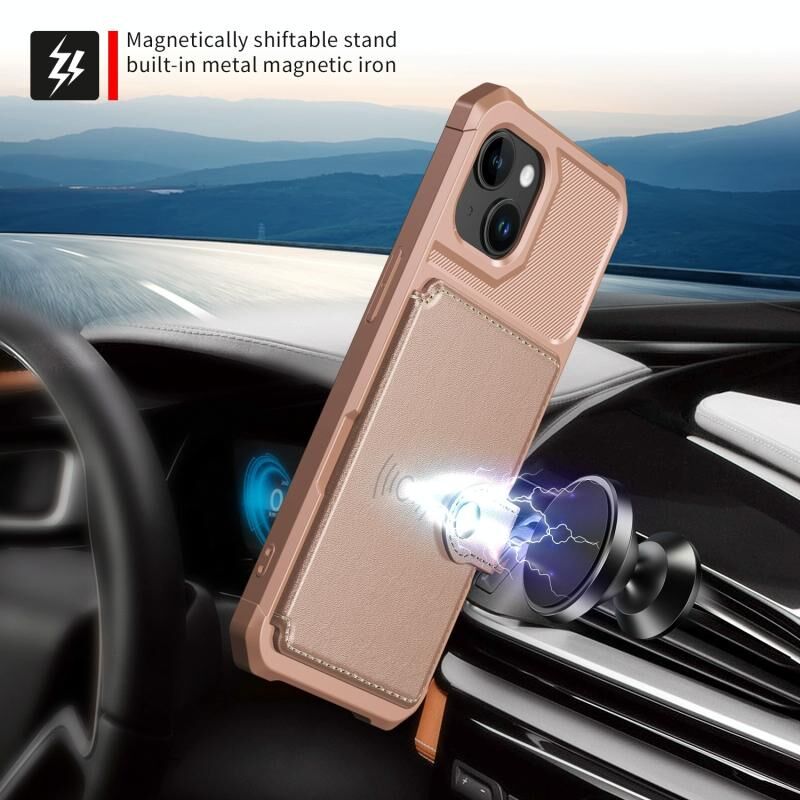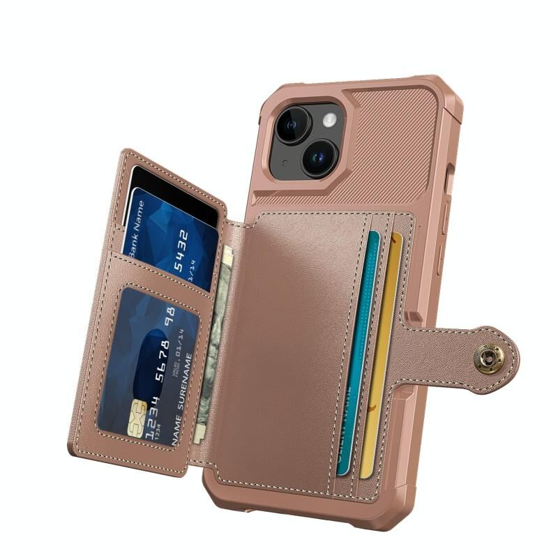 Θήκη τηλεφώνου από δέρμα με μαγνητικό πορτοφόλι για iPhone 15 Plus (Ροζ χρυσός)