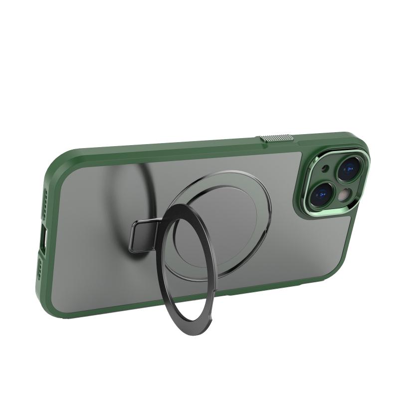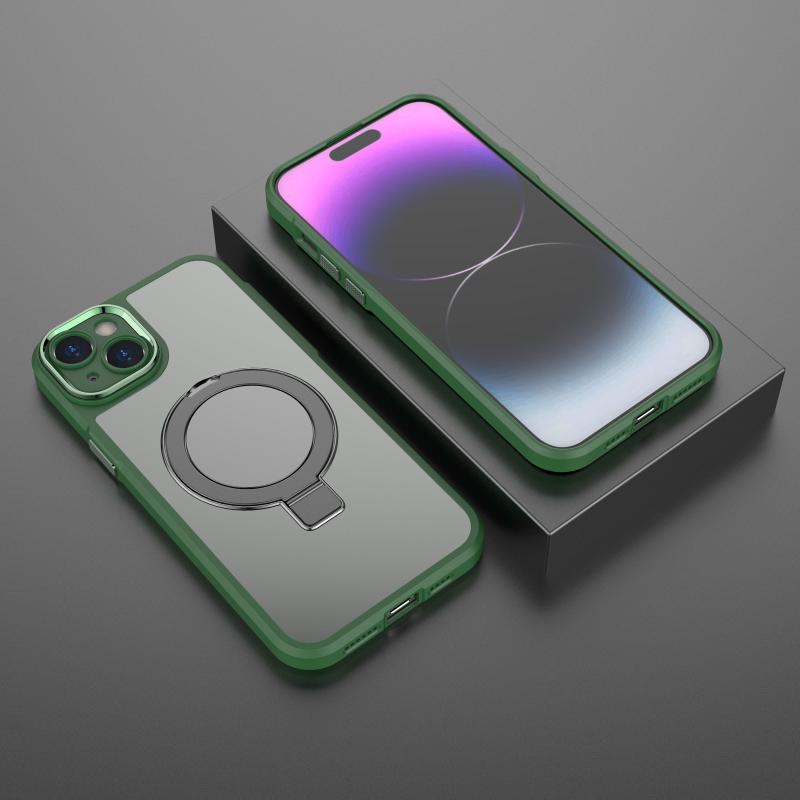 For iPhone 15 Plus MagSafe Magnetic Metal Holder Phone Case(Green)