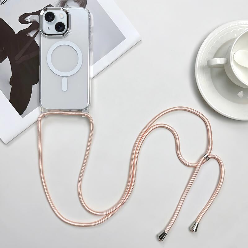 Θήκη τηλεφώνου για iPhone 15 Plus MagSafe Μαγνητική PC + TPU με κορδόνι (Κίτρινο Ροζ Γκρι)