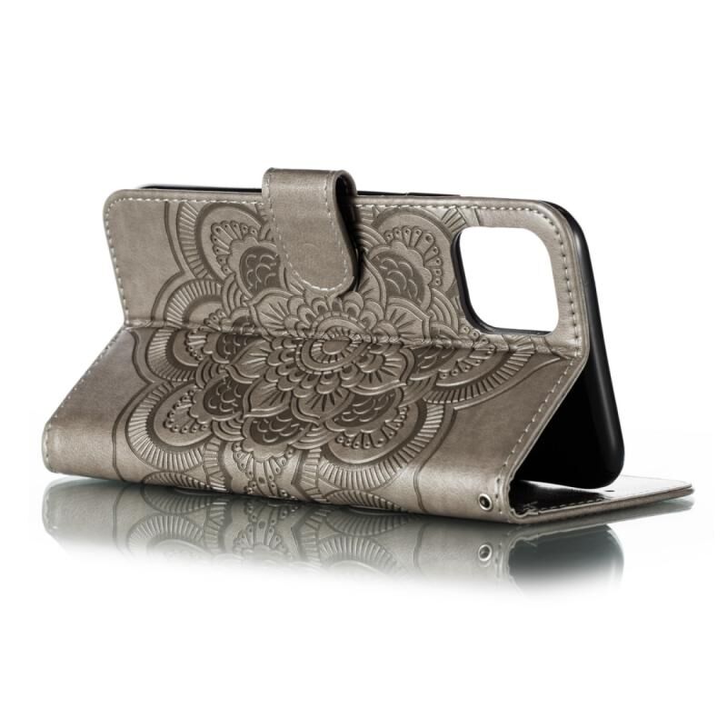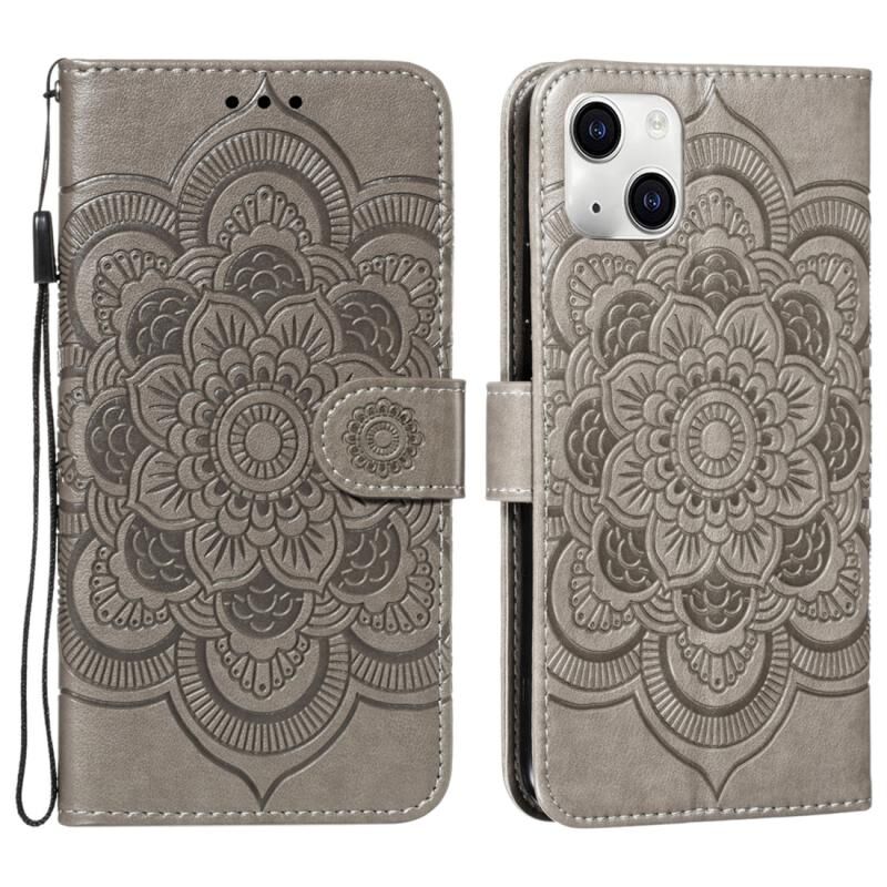 For iPhone 15 Plus Mandala Embossing Pattern Horizontal Flip Leather Phone Case(Gray)