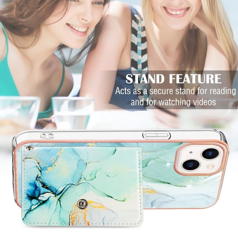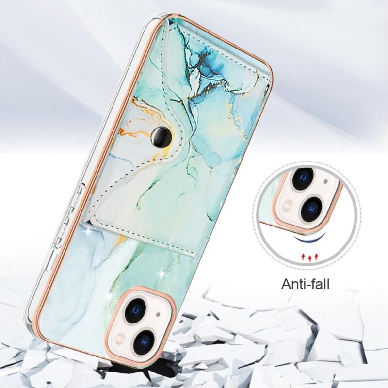 Θήκη τηλεφώνου με σχέδιο μάρμαρου IMD και θήκη καρτών για iPhone 15 Plus (πράσινο)