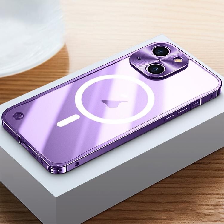 For iPhone 15 Plus Metal Frame Frosted PC Shockproof MagSafe Case(Purple)