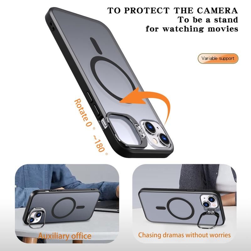 For iPhone 15 Plus Metal Invisible Camera Holder MagSafe Magnetic Phone Case(Black)