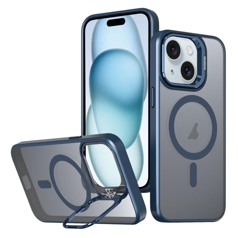 For iPhone 15 Plus Metal Invisible Camera Holder MagSafe Magnetic Phone Case(Blue)