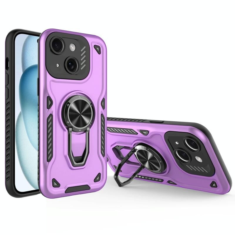 Θήκη τηλεφώνου με μαγνητική βάση περιστρεφόμενου μεταλλικού βραχίονα TPU + PC για iPhone 15 Plus (Μαύρο)