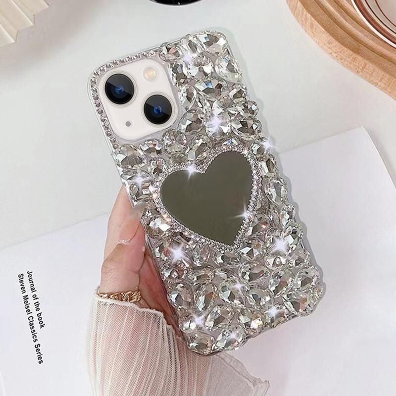 Θήκη τηλεφώνου για iPhone 15 Plus, Καθρέφτης, Χειροποίητη, Λαμπερή με Ρητίνες, PC (Ασημί Γκρι Αγάπη)