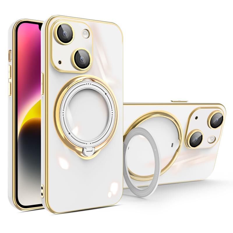 Θήκη τηλεφώνου για iPhone 15 Plus, πολυλειτουργική με επιμετάλλωση και υποστήριξη MagSafe (Λευκό)