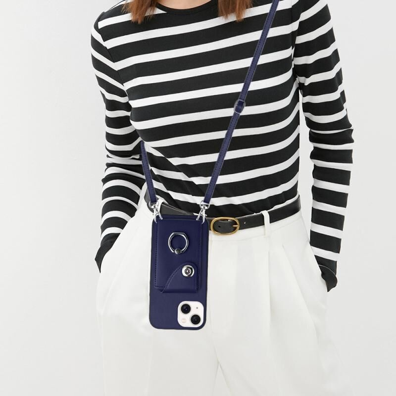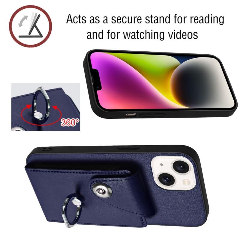 Θήκη τηλεφώνου για iPhone 15 Plus με κάρτα οργάνωσης, δακτύλιο και μακρύ λουρί (Πράσινο)