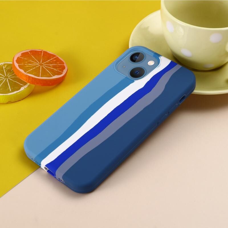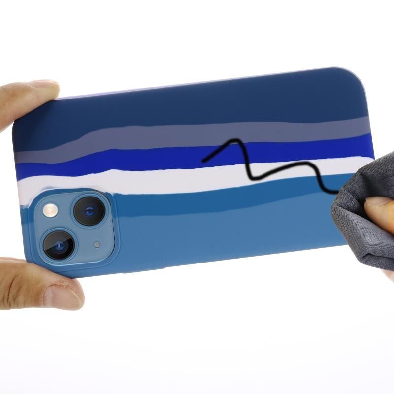 Θήκη σιλικόνης υγρού για iPhone 15 Plus (Ροζ) σε χρώματα του ουράνιου τόξου (Μπλε)
