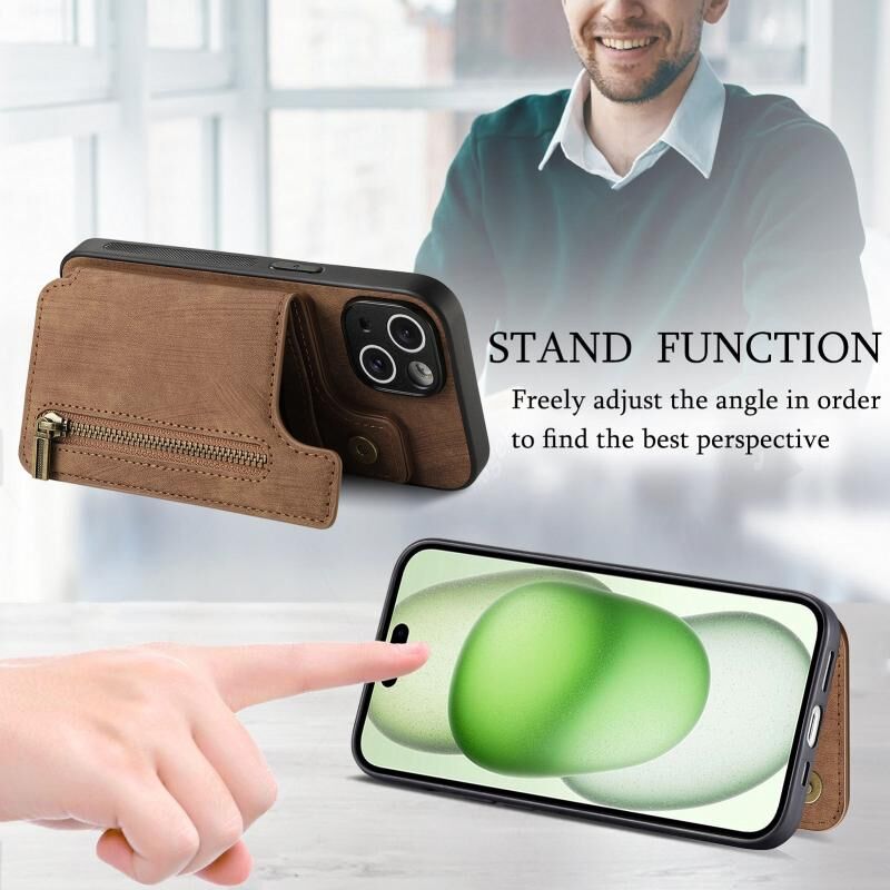 2. Λειτουργία πορτοφολιού με φερμουάρ: Η δερμάτινη θήκη είναι εξοπλισμένη με υποδοχές για κάρτες και ένα μικρό ποσό μετρητών.