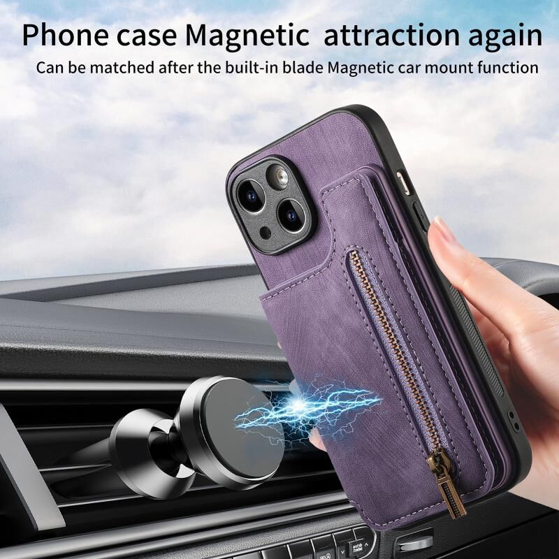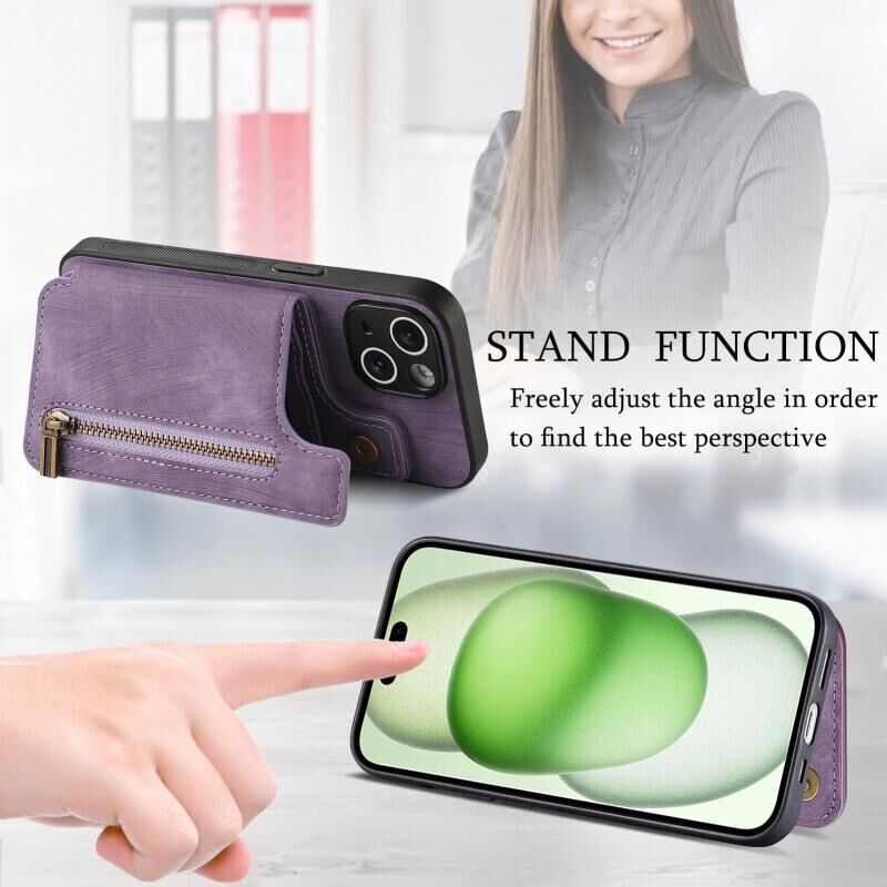 2. Λειτουργία πορτοφολιού με φερμουάρ: Η δερμάτινη θήκη είναι εξοπλισμένη με υποδοχές για κάρτες και ένα μικρό ποσό μετρητών.