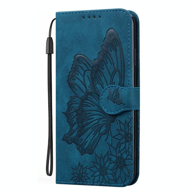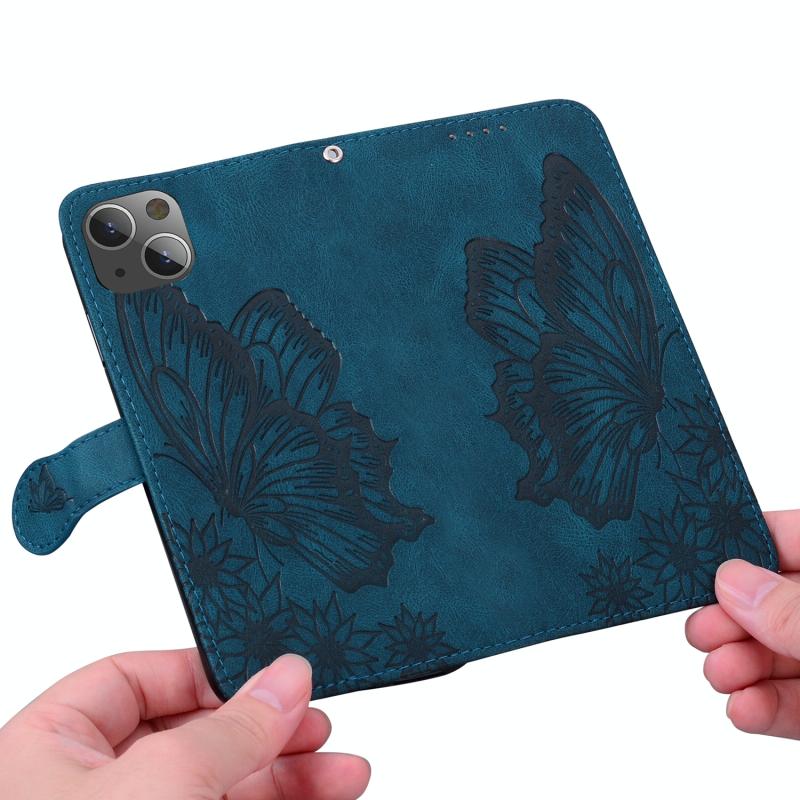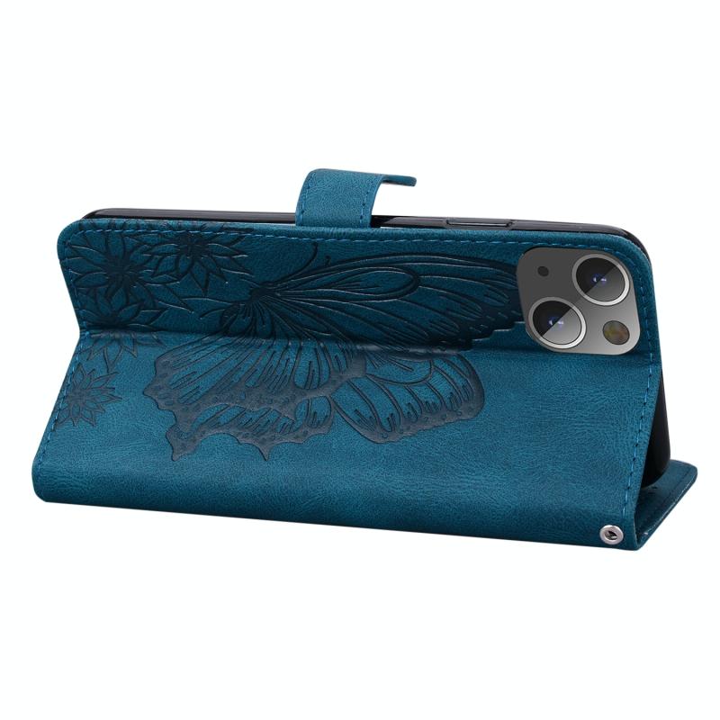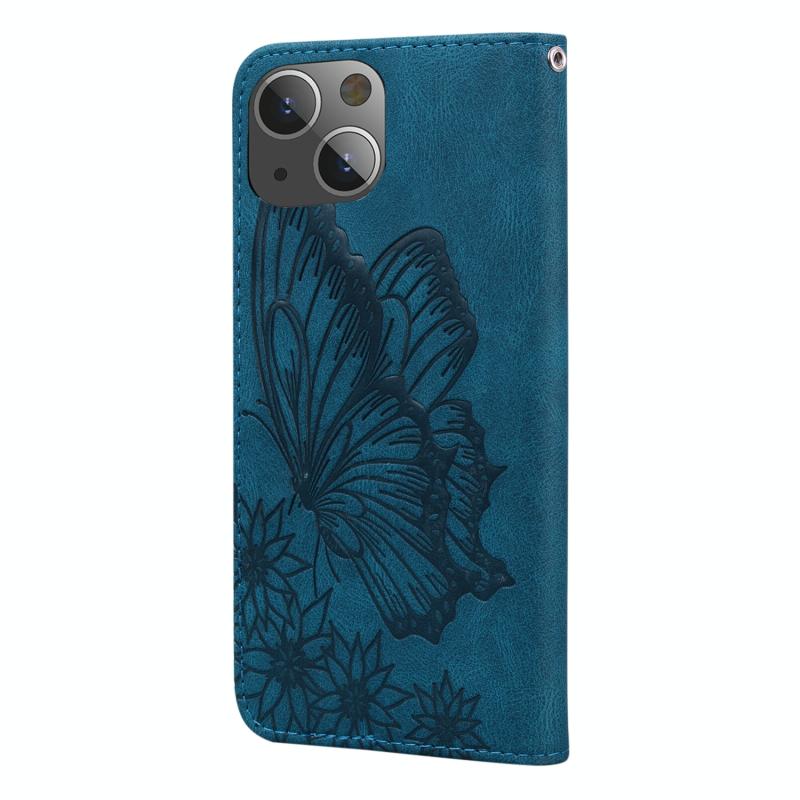 For iPhone 15 Plus Retro Skin Feel Butterflies Embossing Leather Phone Case(Blue)
