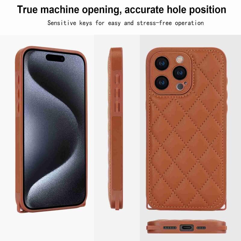 Θήκη τηλεφώνου με υφή ρόμβου για iPhone 15 Plus με διπλό κορδόνι (Καφέ)