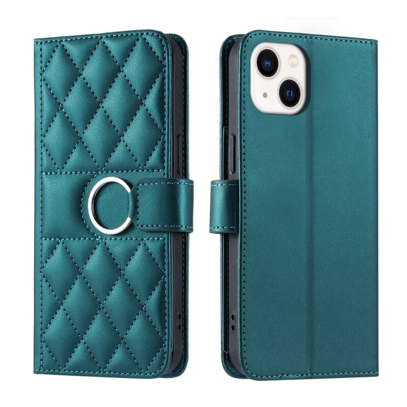 For iPhone 15 Plus Ring Buckle Rhombic Leather Phone Case(Green)