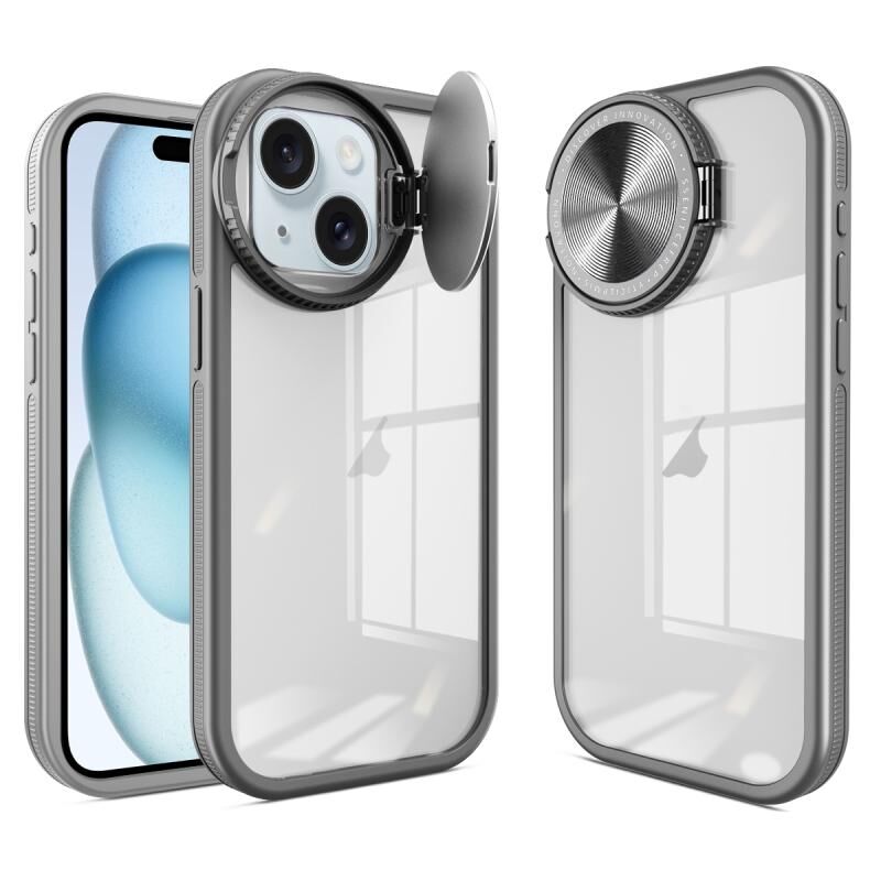 Θήκη τηλεφώνου για iPhone 15 Plus, υβριδική από TPU και PC με στρογγυλή προστασία κάμερας (Γκρι)