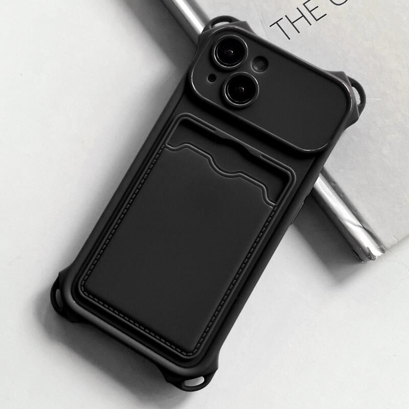Θήκη κινητού τηλεφώνου για iPhone 15 Plus, ανθεκτική στις κρούσεις, με θήκη για κάρτες, ματ TPU (Μαύρο)
