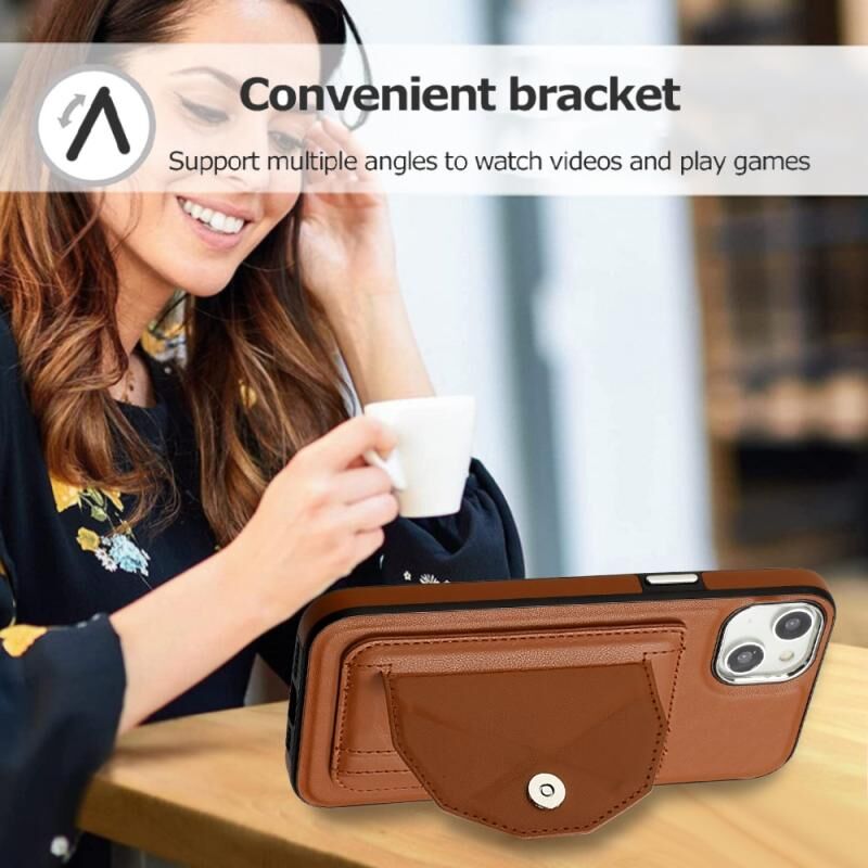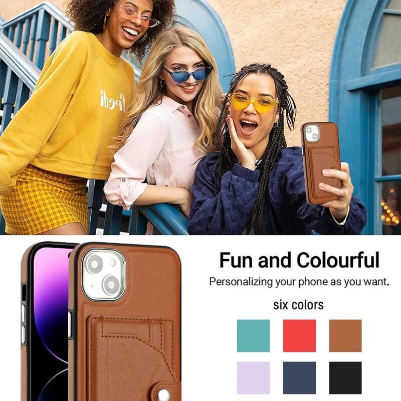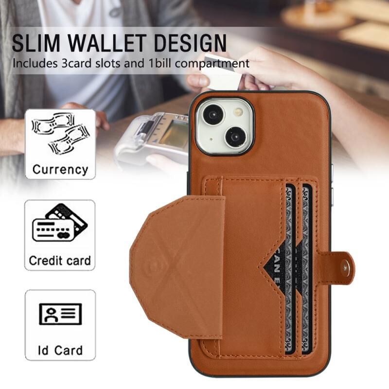 Θήκη για iPhone 15 Plus ανθεκτική στις κρούσεις από δέρμα με θήκη για κάρτες (Καφέ)