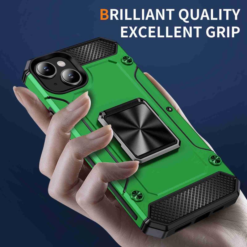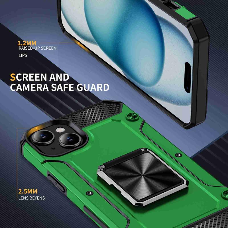 For iPhone 15 Plus Shockproof Metal Holder Phone Case(Green)