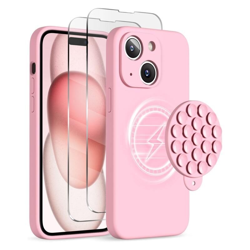Θήκη τηλεφώνου για iPhone 15 Plus από σιλικόνη με βεντούζα και MagSafe, με προστατευτική μεμβράνη οθόνης (Μέντας Πράσινο)