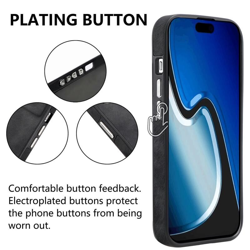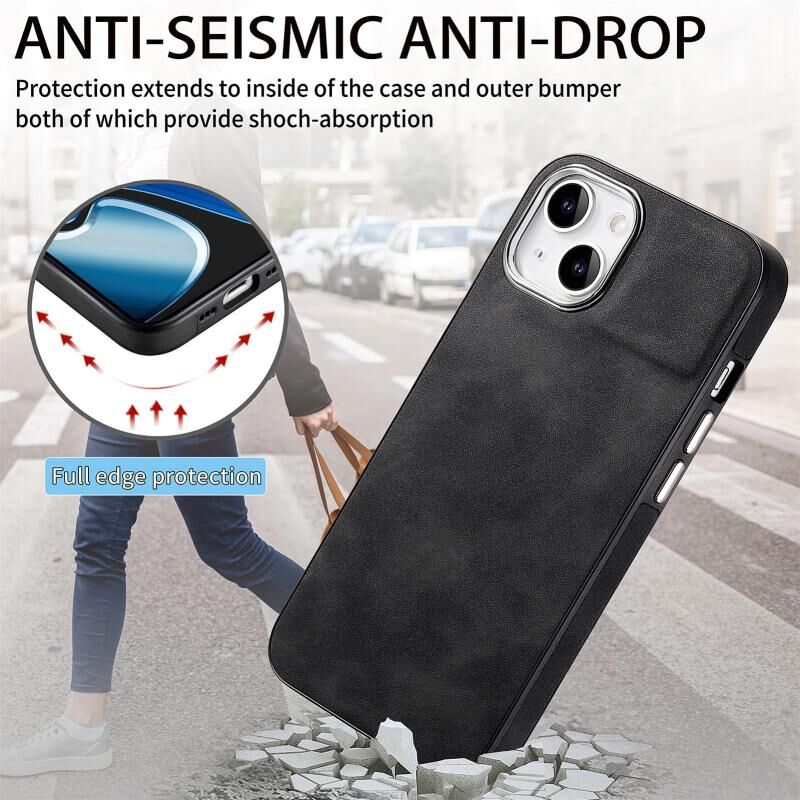 Θήκη για iPhone 15 Plus με αίσθηση δέρματος, γαλβανισμένη από TPU, αντικραδασμική (Μαύρο)