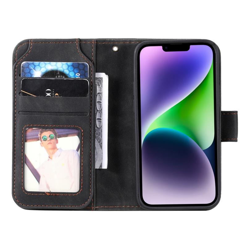 For iPhone 15 Plus Skin Feel Multi-card Wallet Leather Phone Case(Black)