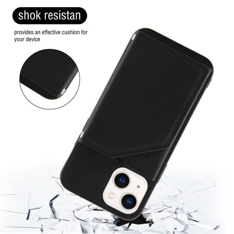 Θήκη για iPhone 15 Plus με αίσθηση δέρματος, PU + TPU + PC, αντικραδασμική (Καφέ)