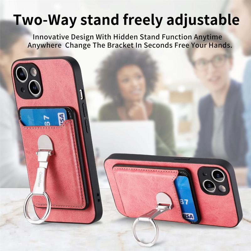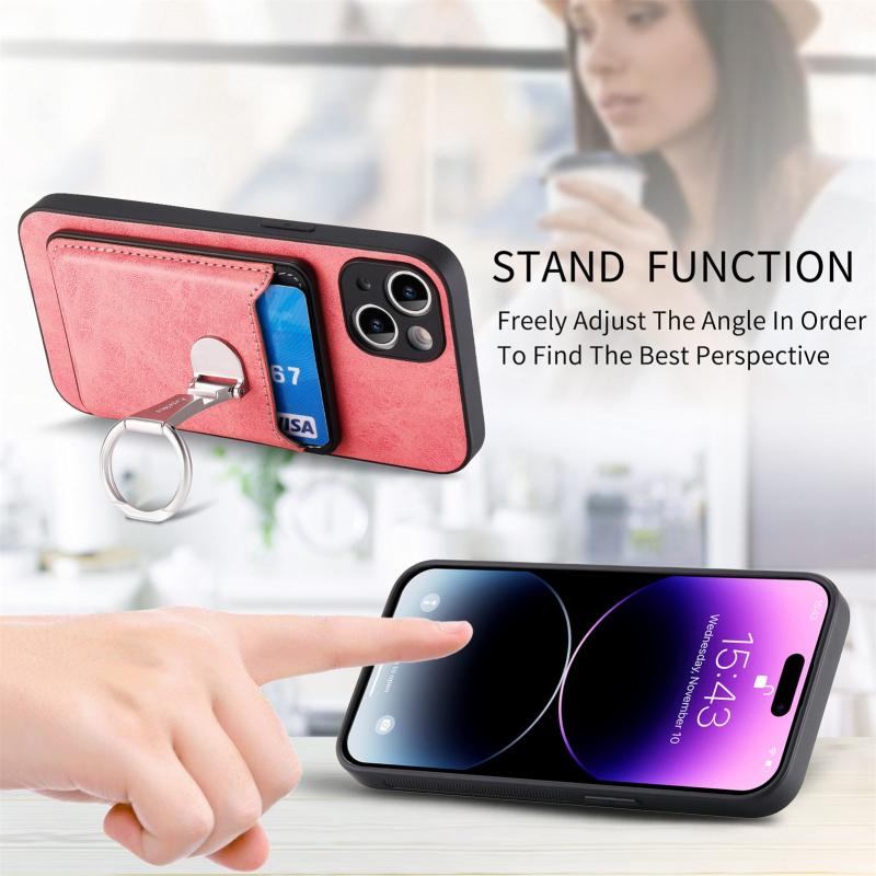 For iPhone 15 Plus Skin Feel Ring Holder Wallet Magnetic Phone Case(Pink)