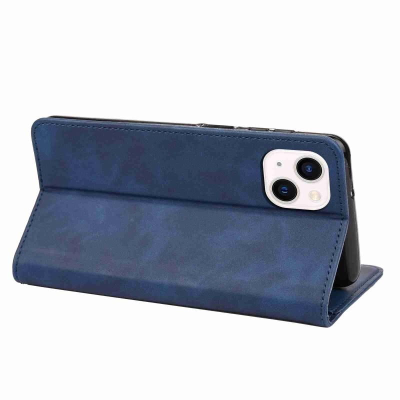 For iPhone 15 Plus Skin Feel Splicing Leather Phone Case(Blue)