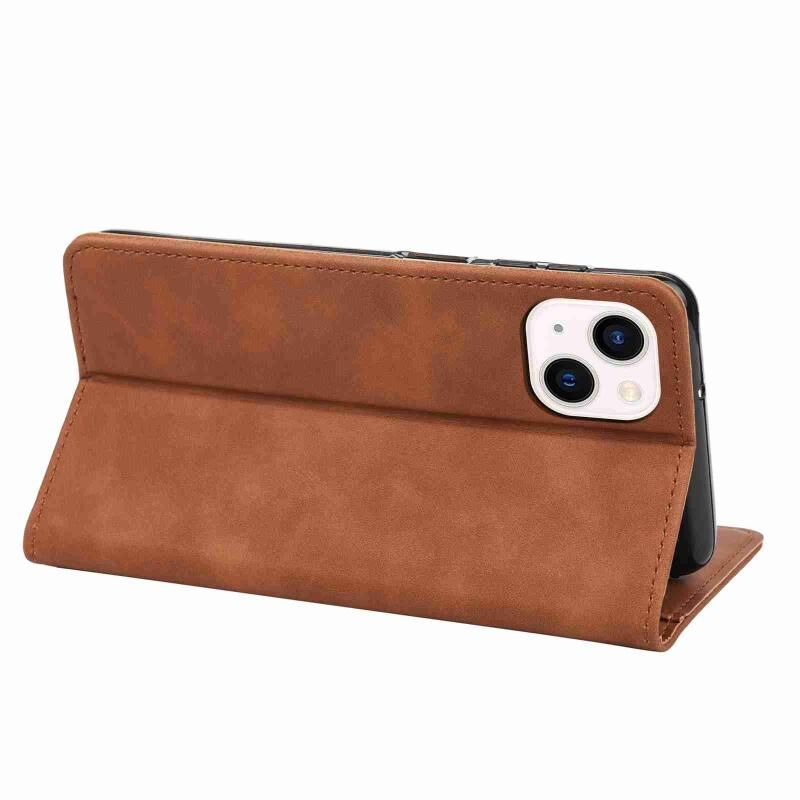 For iPhone 15 Plus Skin Feel Splicing Leather Phone Case(Brown)