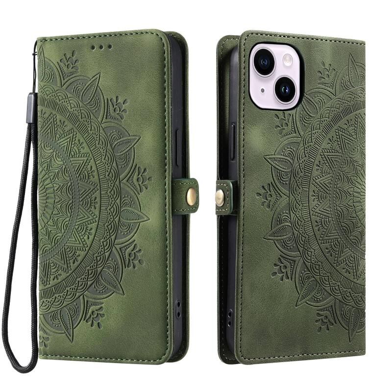 Θήκη τηλεφώνου από δέρμα με ανάγλυφο σχέδιο Totem για iPhone 15 Plus (Βαθύ Πράσινο)