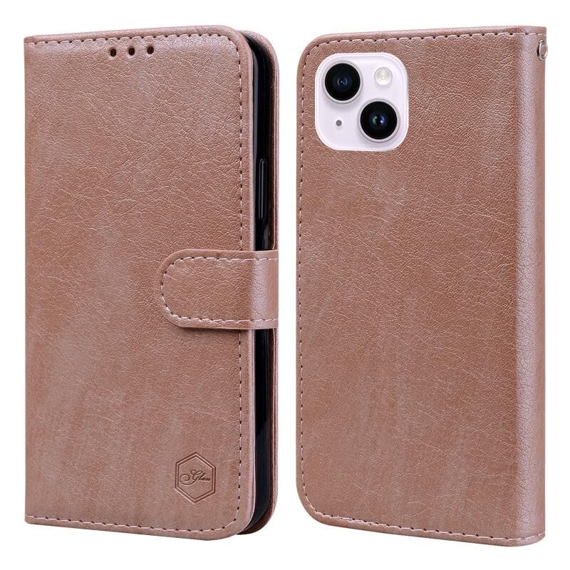 Θήκη τηλεφώνου για iPhone 15 Plus με υφή δέρματος λαδιού και αίσθηση δέρματος, κατασκευασμένη από PU + TPU (Σαμπάνια)