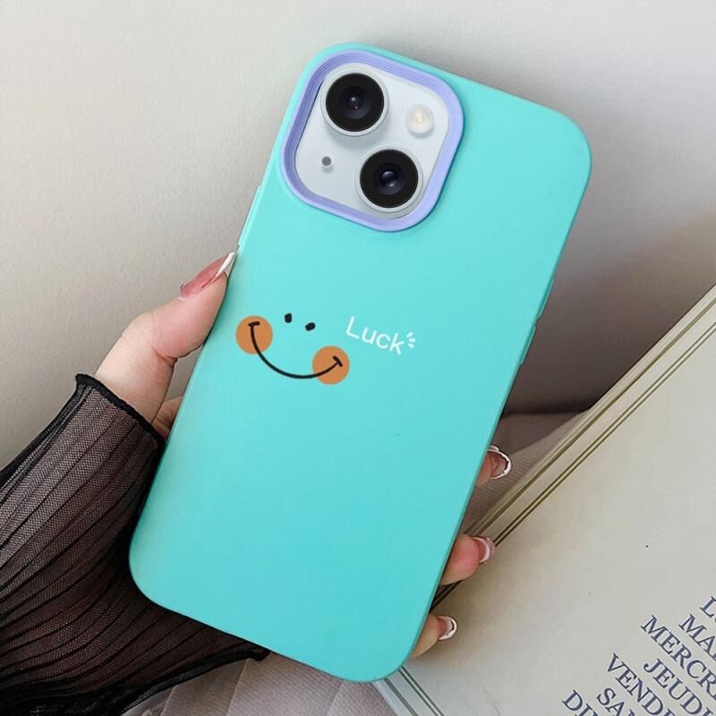 Θήκη τηλεφώνου για iPhone 15 Plus, Υβριδική PC TPU με χαμογελαστό πρόσωπο (Sky Cyan)