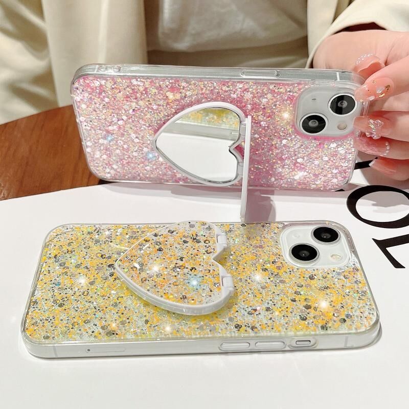 Θήκη τηλεφώνου για iPhone 15 Plus με λαμπερά στρας, καθρέφτη και βάση από εποξειδική ρητίνη TPU (Κίτρινο)