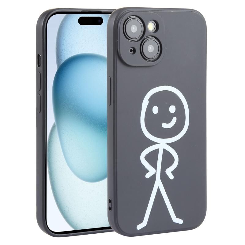 For iPhone 15 Plus Stickman Pattern Liquid Silicone Phone Case(Black)