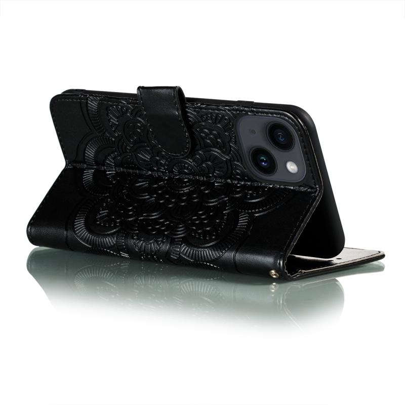 For iPhone 15 Plus Sun Mandala Embossing Leather Phone Case(Black)