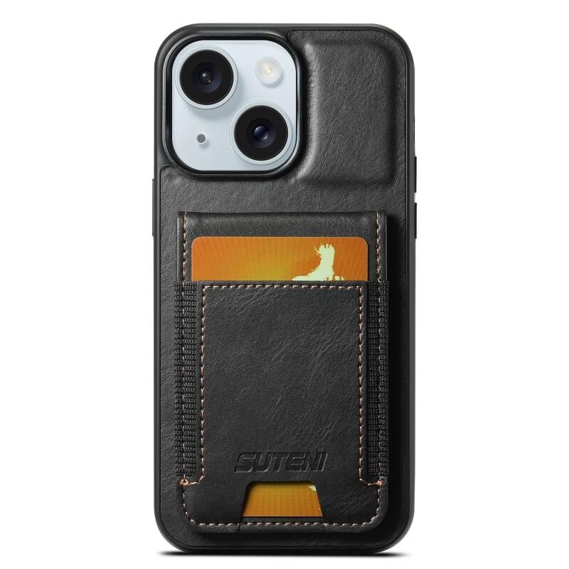 Θήκη κινητού τηλεφώνου για iPhone 15 Plus Suteni H03 από δέρμα με κερί λαδιού, με βάση-πορτοφόλι (Μαύρο) (Μαύρο)